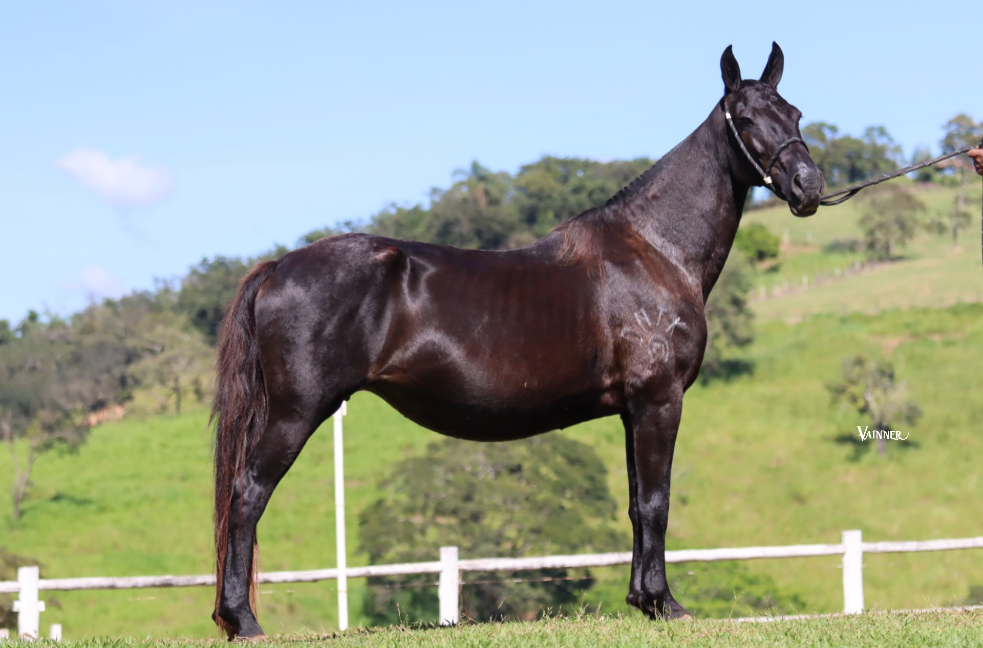 Aqui temos uma égua PREMIADA EM PISTAS de pelagem PRETA filha do fenomenal NOBRE DE SANTA LÚCIA, portanto, irmã paterna da SINIRA DO BERMA, égua considerada por muitos como uma das melhores éguas da raça e que produziu, dentre tantos outros destaques, a CAMPEÃ DAS CAMPEÃS NACIONAL DE MARCHA E GRANDE CAMPEÃ NACIONAL DA RAÇA, REITORA ELFAR! Já sua mãe, NATASHA DA MORADA NOVA, égua também premiada em pistas, nos remete aos grandes FANTOCHE DA PRIMAVERA e IRAPURU BELA CRUZ! Égua que possui uma assimetria no movimento de seus posteriores e, por isso, é indicada exclusivamente para reprodução, a qual está totalmente ÍNTEGRA, inclusive, está desmamando uma potra.