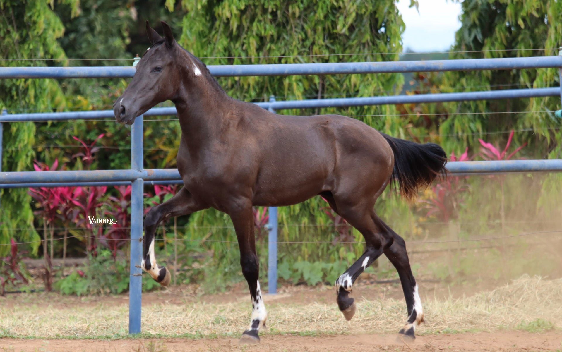 Aqui temos um potro PAMPA DE PRETO MARAVILHOSO! Filho do reprodutor PAMPA DE PRETO HOMOZIGOTO DE MARCHA PICADA, NANUQUE DA ESPERANÇA! Nanuque que é consanguíneo nos fenômenos HAITY CAXAMBUENSE e INGLÊS J.B., dois ícones na produção de MARCHA PICADA! Além destes dois ícones da raça, Nanuque também possui em sua genética o JUPIÁ DA ESCADINHA, outro cavalo reconhecido por sua descendência de MARCHA PICADA. Potro LINDO que nasceu de MARCHA PICADA e hoje apresenta o andamento que vemos em seu vídeo. Está sendo comercializado sem registro, pois sua mãe não é registrada no MARCHADOR.